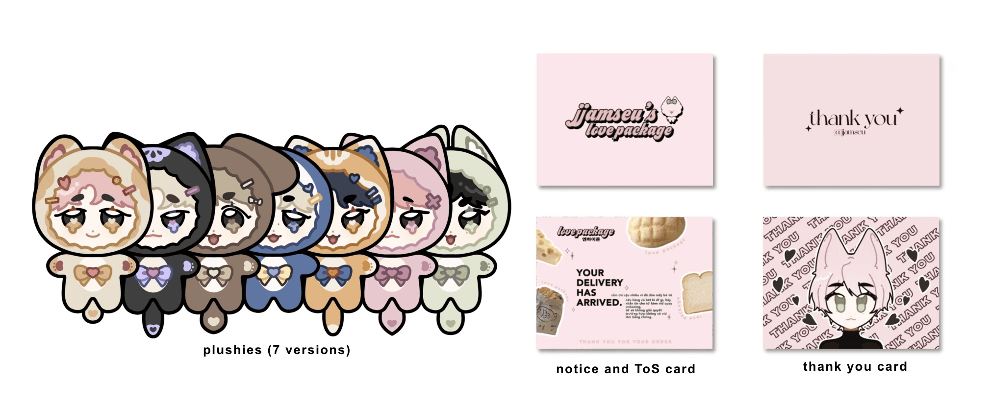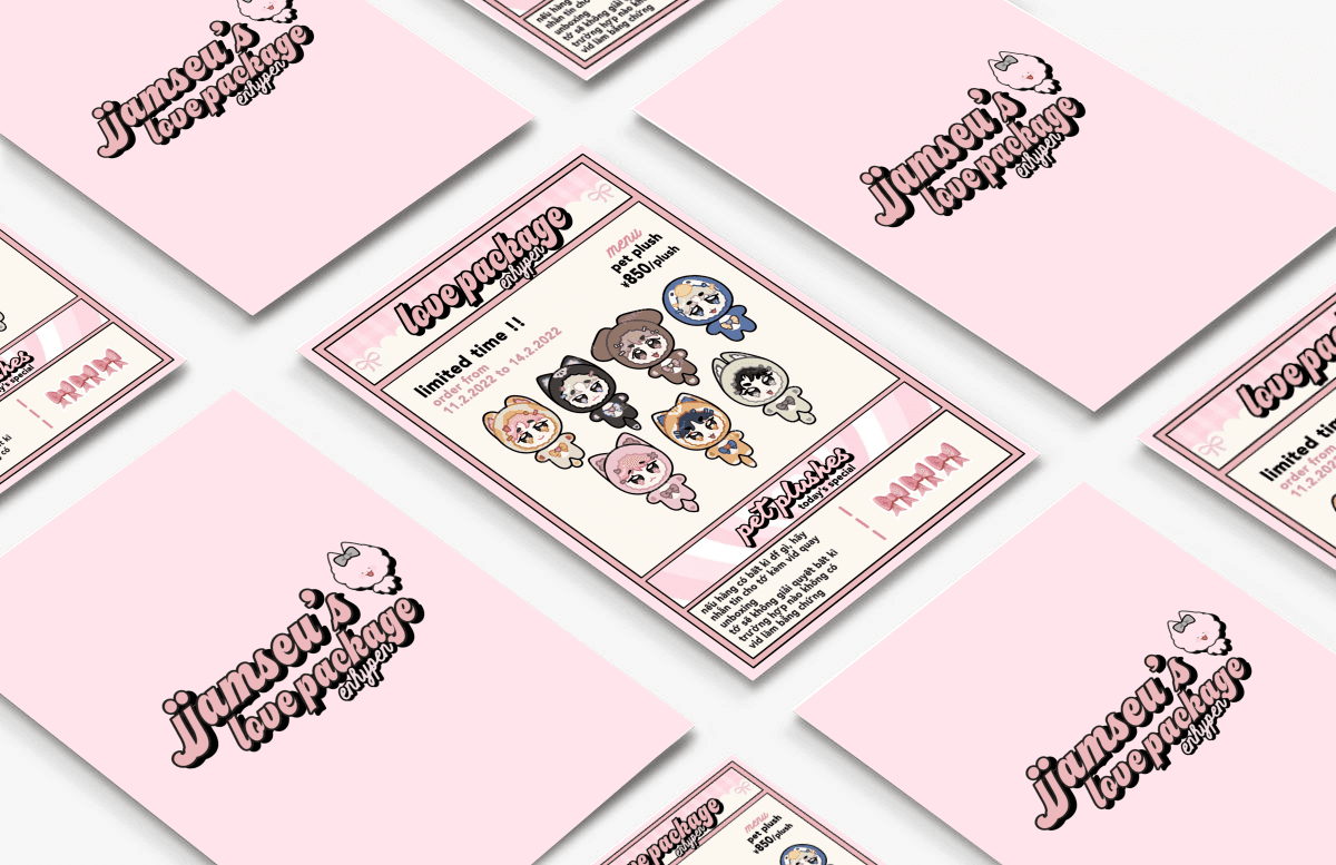 A personal art + business project I came up with in February 2022. I designed the plushes, flyers, postcards, and packaging, getting 96 preorders in four days.